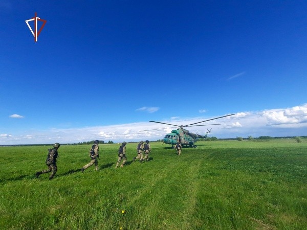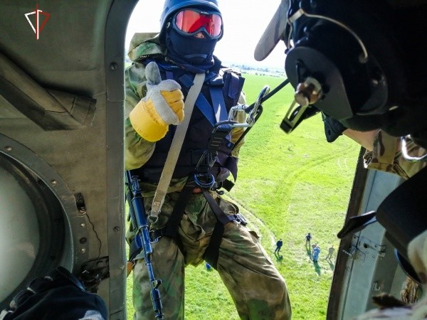 Перед бойцами стояла задача - высадиться на открытом участке местности при зависании вертолёта и после этого незамедлительно занять позиции для условного боя.