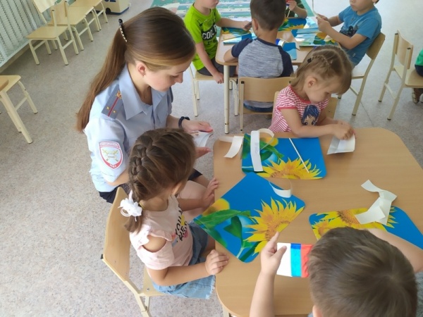 Полицейские познакомили дошколят с историей флага Российской Федерации, рассказали о том, что его три цвета символизируют силу, веру и благородство. Вместе с сотрудником ГИБДД и воспитателями малыши изготовили световозвращающий триколор. С ним сегодня, в день праздника, дети вместе с родителями пройдут по улицам города и станут самыми заметными пешеходами.