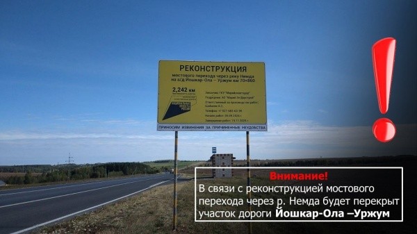 Проезд откроют после завершения всех работ. Движение будет осуществляться в объезд через дороги Одобеляк - Куженер – Параньга, Объездная автомобильная дорога пгт. Куженер, Куженер – Токтайбеляк, сообщают в паблике «Дороги Марий Эл» «ВКонтакте» и просят водителей набраться терпения.