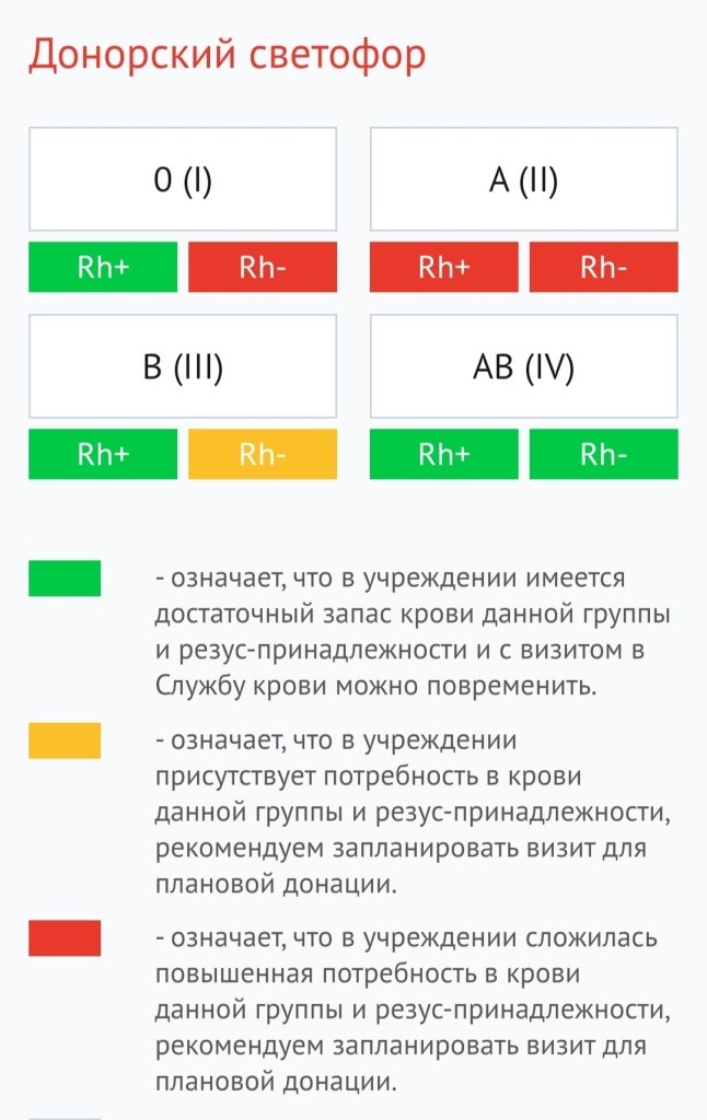 Специалисты станции переливания сообщили, что сейчас нужна помощь добровольцев со второй группой крови обоих резус-факторов, а также первой отрицательной. Также есть потребность в биоматериале доноров с третьей отрицательной.
