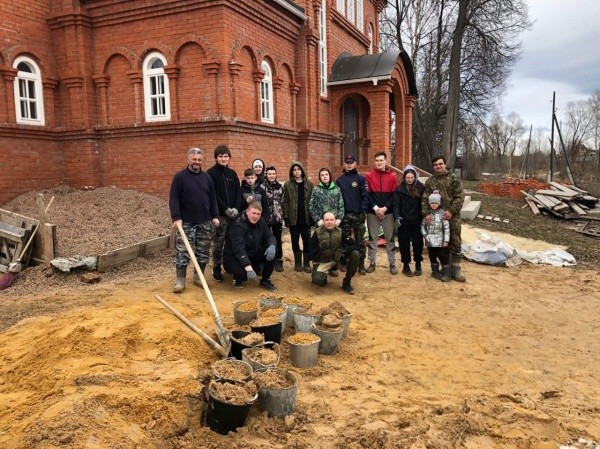 Вместе со своим тренером-наставником Сергеем Калабаем ребята заполняли песком пустоты между кирпичной кладкой основания стен. Поскольку экскаватор не мог проехать по размякшей земле, молодые люди таскали песок ведрами. Благодаря спортивной дисциплине и выносливости молодые люди слаженно работали целый день и перенесли в строящееся помещение больше 30 тонн песка. Девушки в это время убирали с территории храма прошлогоднюю листву, рассказали в пресс-службе Йошкар-Олинской и Марийской епархии.