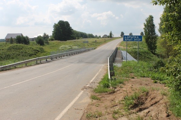 Мост через реку Арыпка был построен в 1985 году и за это время пришел в аварийное состояние. За время работы подрядная организация выполнила ремонт опор и пролетного строения, смонтировала лестничные сходы, водоотводные лотки и локальные очистные сооружения, восстановила регуляционные сооружения, установила перильное и барьерное ограждение, окрасила бетонные поверхности, произвела гидроизоляцию проезжей части и выполнила устройство асфальтобетонного покрытия.