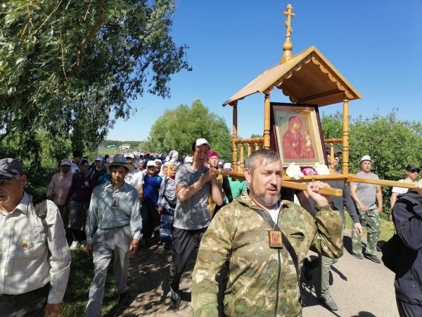 Этот крестный ход с особо почитаемой в приходе иконой Богородицы проходит каждый год в последнее воскресенье июня и с каждым разом привлекает все больше верующих. В этом году молитвенное шествие собрало порядка 500 человек. В Раифе крестоходцы вошли в собор, освященный в честь Грузинской иконы Божией Матери, и приложились к старинному чудотворному образу, а после молебна и трапезы выдвинулись в обратный путь.