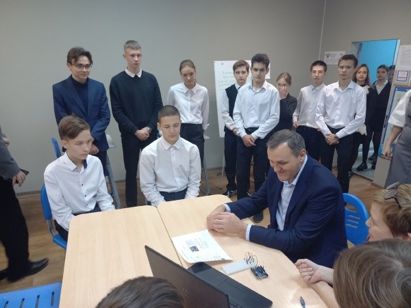 Мэра в стенах школы встретили ученики начальных классов. Второклассники подготовили для гостя трогательные стихи. А потом Рафис Шагвалеев вместе со школьниками поиграл в шашки, побывал на уроке истории ко Дню народного единства и в кванториуме. Кроме того, мэр помог ребятам собрать пазл из «слагаемых успеха» на тематической стене. А также в центре детских инициатив глава города смастерил с подростками самолетики с пожеланиями.