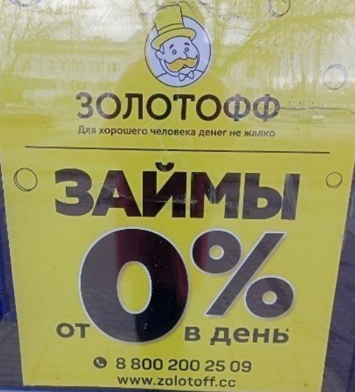 Микрокредитной компании «Золотофф» выдали штраф в размере 100 000 рублей за ненадлежащую рекламу, которая рассказывала о «нулевой» ставке за займ.