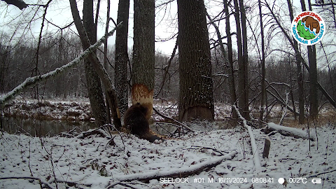 Фотоловушка заповедника «Большая Кокшага» зафиксировала трудовые будни бобра, которые начались с раннего утра.