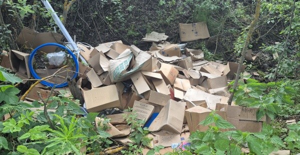 1 августа на земельном участке на площади 75 кв. м. выявлена несанкционированная свалка твердых коммунальных отходов, таких как картон, полиэтилен, бумага, древесина, резина, пластик.