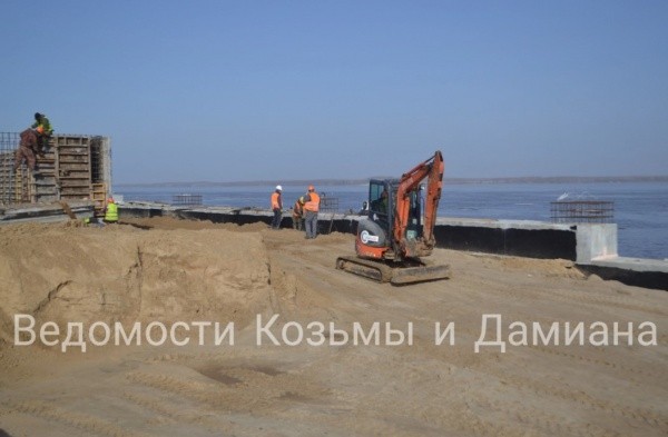 На Волге в акватории Козьмодемьянска продолжается строительство причала. Работы выполняет чувашская фирма «Стройкрафт».