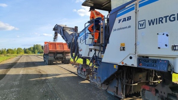 Подрядная организация уже выполнила работы по исправлению продольного и поперечного профиля, ремонту 5 водопропускных труб, уложила нижний слой асфальтобетонной смеси, приступила к укладке верхнего покрытия.