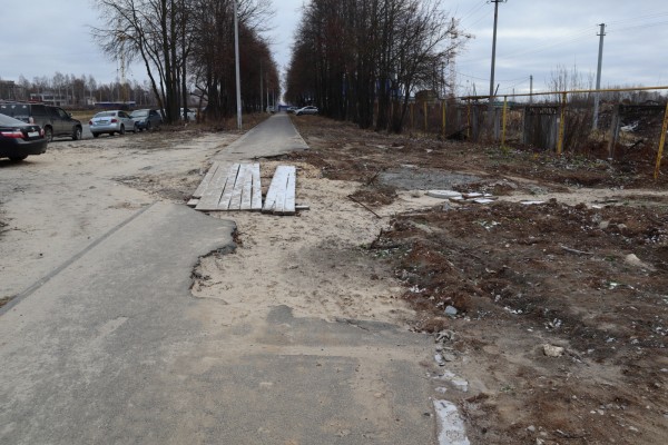 «В октябре прошлого года вдоль дороги на улице Молодежной была сделана хорошая пешеходная дорожка к школе № 21, но, к сожалению, простояла она только зиму. Весной начались работы по прокладке канализационных труб к новому микрорайону, и тротуар перекопали в двух местах. На наши запросы представители управления городского хозяйства ответили, что согласно выданному ордеру в конце мая после проведения всех работ подрядчик восстановит дорожку. Сегодня почти середина ноября, а вместо асфальта на песке лежат лишь несколько деревянных досок. Куда это годится?» – возмутился активист регионального отделения Народного фронта в Марий Эл Евгений Калинкин.