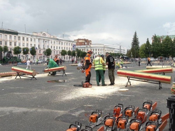 Состязания проходили в два этапа – на территории Нолькинского лесного участка и на площади Ленина Йошкар-Олы. Участники конкурса должны были выполнить 5 упражнений: валка деревьев, обрезка сучьев, замена цепи, раскряжевка комбинированным резом, точная раскряжевка.