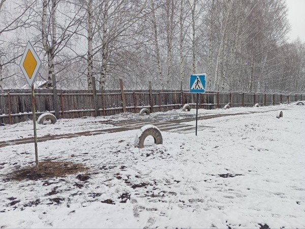Своими силами, используя собственную технику оборудованы площадки для разворота при ограниченной ширине территории, постановки машины в бокс задним ходом, агрегатирования учебной самоходной машины с навесным оборудованием, остановки и торможения – в общем, все, что должно быть для практических занятий.