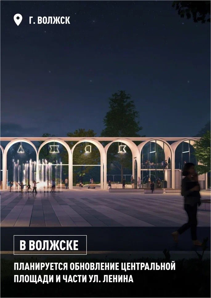 Именно эти города стали победителями всероссийского конкурса проектов по созданию комфортной городской среды. На Центральной площади Волжска будут обустроены площадки для проведения развлекательных и торжественных мероприятий, появятся парковки (при этом, озеленение, посадки деревьев и кустарников в плане тоже есть!), приобретут опрятный вид пешеходные зоны.