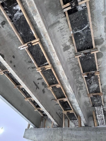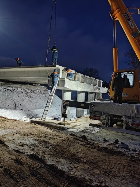Сейчас подрядная организация закончила работы по усилению опор, монтажу и омоноличиванию балок пролетного строения. Как только наступят благоприятные условия, специалисты начнут красить опоры и бетонные поверхности, устраивать асфальтобетонное покрытие, приступят к монтажу тротуарных блоков и установке барьерного и перильного ограждений.
