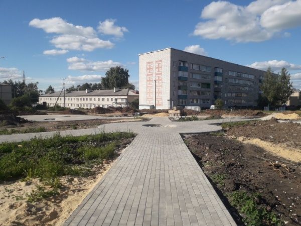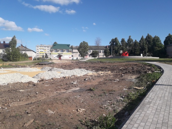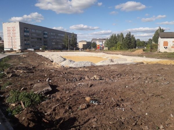 Сейчас строятся пешеходные дорожки, спорттплощадка, завезен грунт и песок,