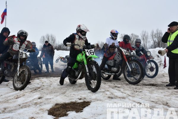 Подъезжая к месту проведения соревнований, на мототрассу за деревней Шоя-Кузнецово, я издалека увидела развевающийся флаг и группу детей и взрослых, которые сосредоточенно готовили своих «коней» к заезду. Извилистую дорогу расчистили специально к соревнованиям. И среди белоснежных сугробов по всей трассе то тут, то там чернели крутые спуски и подъемы.