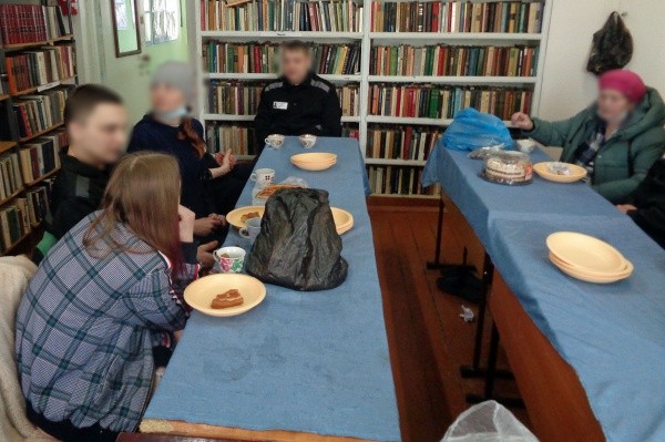 Родственников познакомили с клубом и кружками, а затем пригласили в жилое помещение отряда, где осужденные проводят свое свободное время. Осужденные общались с родными в библиотеке колонии за чашкой ароматного чая.