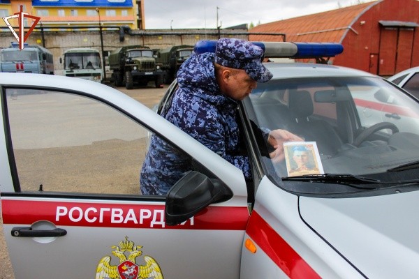 Сотрудники подразделений вневедомственной охраны Управления Росгвардии по республике разместили портреты своих родственников - участников Великой Отечественной войны на служебных автомобилях групп задержания, выезжающих на маршруты патрулирования.
