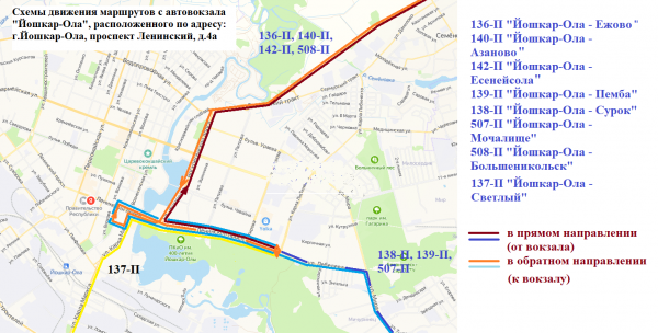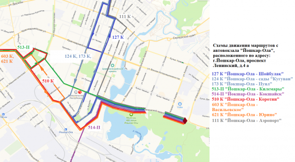 Начальным остановочным пунктом по данным маршрутам определен автовокзал, расположенный по адресу: г. Йошкар-Ола, Кокшайский проезд, дом 19.