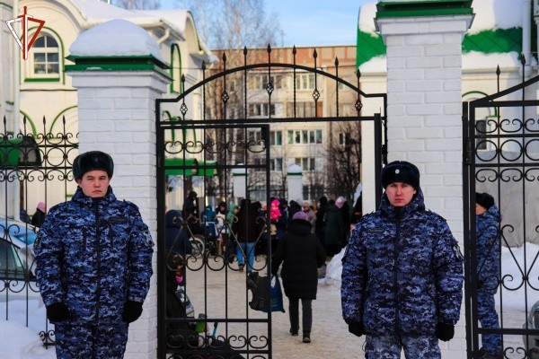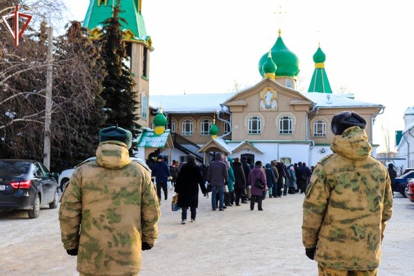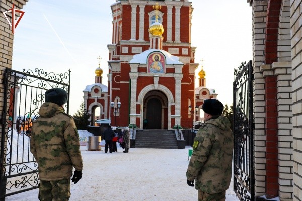 Бойцы Росгвардии совместно с полицейскими и другими экстренными службами дежурили в местах проведения православного праздничного богослужения и традиционного обряда омовения на специально оборудованных крещенских купелях.