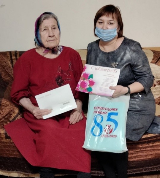 16 декабря свое 95-летие отметила труженица тыла Лидия Загайнова, проживающая в Советском районе. Ее поздравило руководство Комплексного центра социального обслуживания населения.