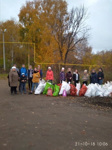 В Козьмодемьянске прошёл субботник, который был приурочен ко Всемирному дню чистоты. В уборке приняли участии экологи и волонтёры Козьмодемьянского лицея. Учащиеся убрали мусор с приовражной территории у моста, между улицами Зелёной и Лесной. Улицу полностью очистили от пластиковых бутылок, жестяных банок и оберток. Только за час работы ребята собрали 48 мешков мусора.