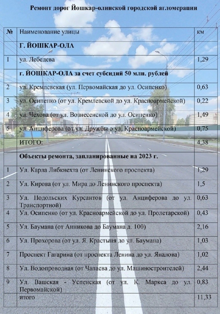 Всего в рамках нацпроекта планируется отремонтировать 208,2 километра автомобильных дорог общего пользования регионального значения, уточнили в Министерстве транспорта и дорожного хозяйства Марий Эл.