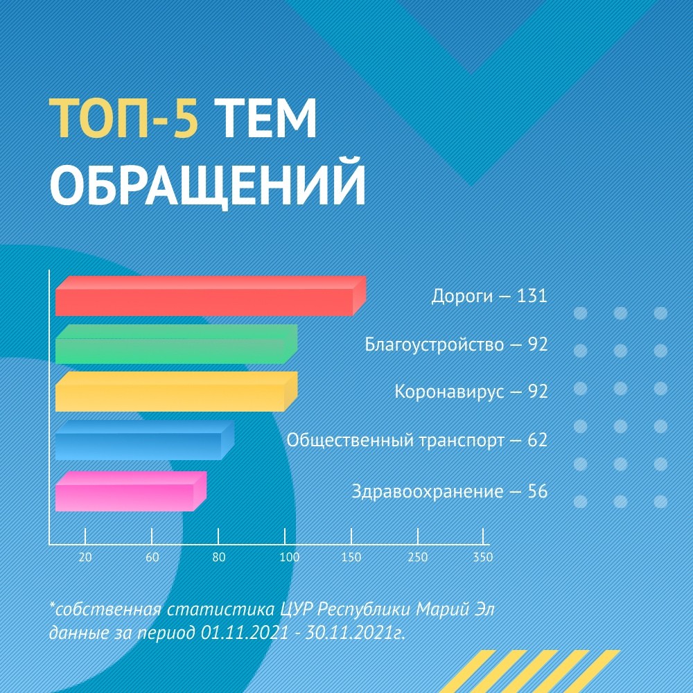 В последний осенний месяц сотрудники ЦУР Марий Эл обнаружили, что число обращений от жителей региона по сравнению с октябрем снизилось на 95.