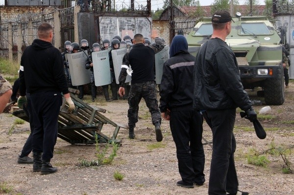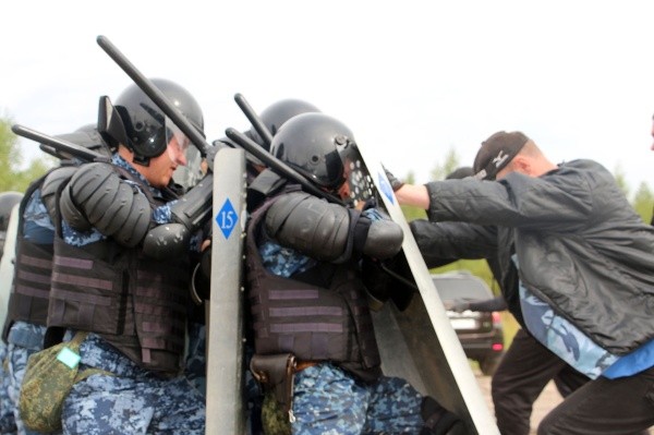 Для применения полученных знаний на практике было проведено тактико-строевое занятие, где отработана тактика действий с группами разграждения и изъятия, блокирования, рассредоточения и конвоирования. Театр конфликтного противостояния зачинщиков условных беспорядков с сотрудниками сводного отряда развернулся на базе закрытого производственного участка исправительной колонии № 4.