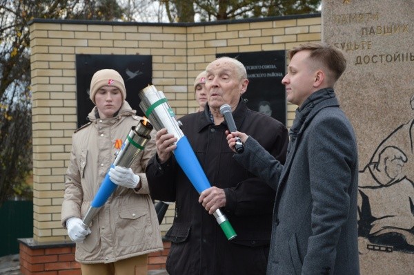 Почетное право зажечь Вечный огонь было предоставлено ветерану педагогического труда, имеющему статус «Дети Великой Отечественной войны», Владимиру Ильичу Кондакову, участнику специальной военной операции Александру Ятманову и юнармейцу Михаилу Беляеву.