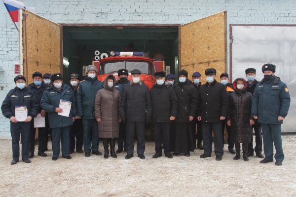 Работать пожарные будут с божьей помощью. На открытии состоялся обряд освящения личного состава, пожарных автоцистерн и помещений новой части. Его провел батюшка местной церкви.