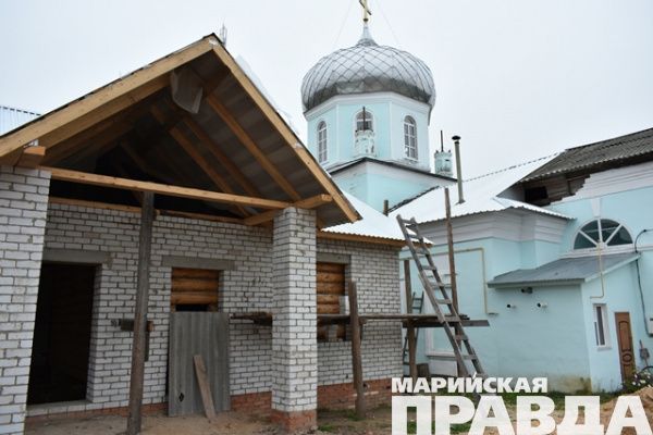 Возле старинной церкви в центре села Сотнур строятся воскресная школа и трапезная. Здание уже под крышей. До зимы, глядишь, будут установлены окна и двери. У входа на поддонах сложен красный кирпич, внутри – мешки цемента.