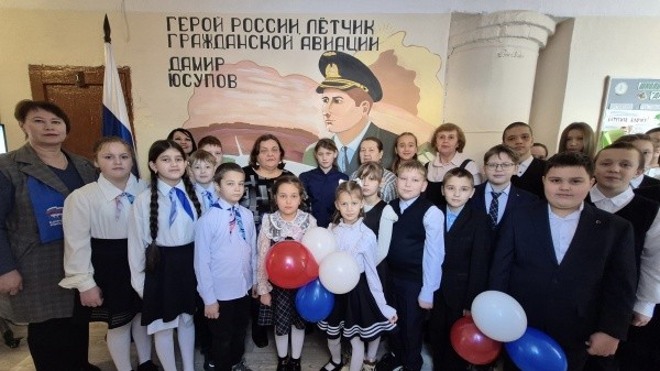 В Тат-Китнинской основной школе Мари-Турекского района состоялось торжественное открытие мурала, посвящённого Герою России, летчику гражданской авиации Дамиру Юсупову. Мероприятие прошло в рамках всероссийского партийного проекта «Лица Героев» и при поддержке Министерства просвещения Российской Федерации.