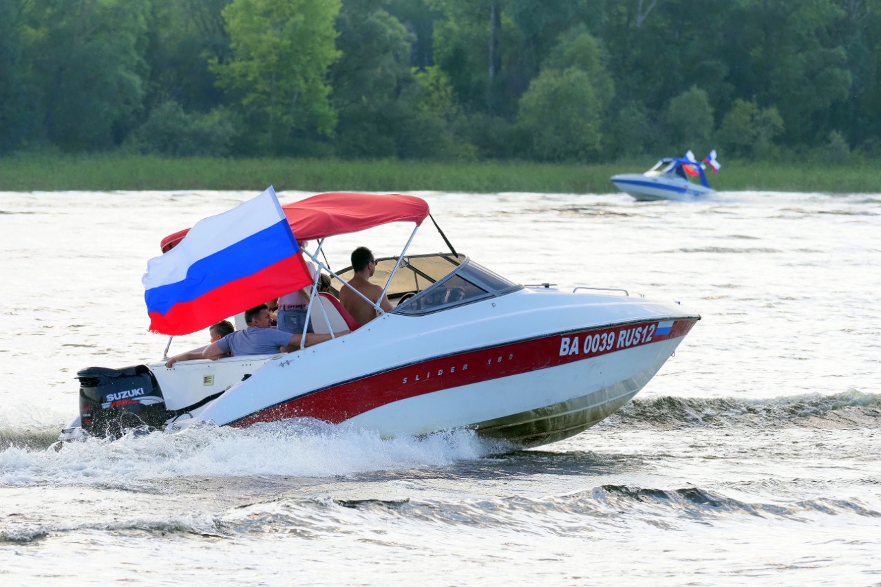 Сегодня, 22 августа, в Волжске в районе Дубовой рощи в акватории Волги прошло довольно необычное празднование Дня Государственного флага РФ. В нем участвовали 12 разномастных гражданских катеров.