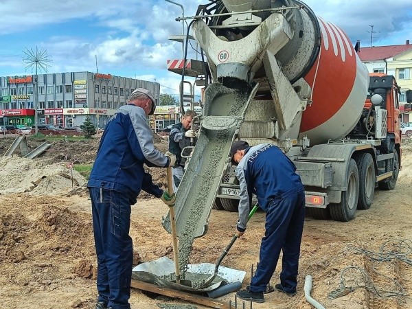 Рабочие укладывают коммуникаций для сухого фонтана, устраивают фундамент для арок и других конструкций. После этого начнется монтаж объектов, рассказал мэр Волжска Рафис Шагвалеев.