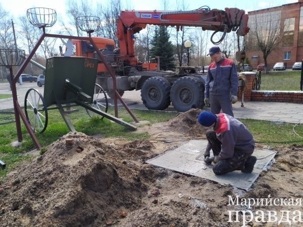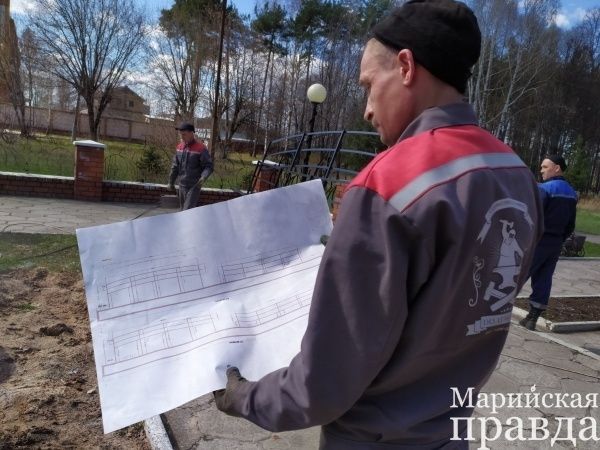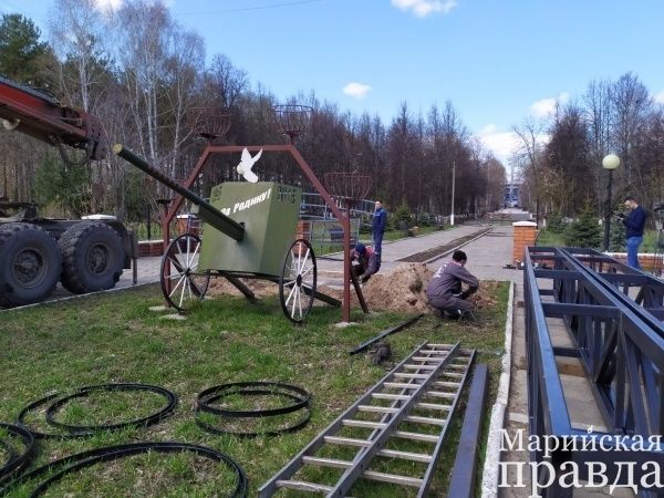 В Волжске устанавливают входную группу в парке Победы
