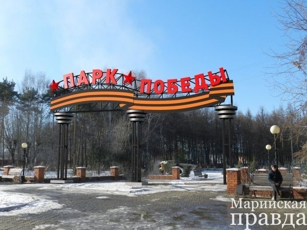 Сегодня в Волжске начался монтаж нового «украшения» парка Победы. Металлическая конструкция с названием мемориального комплекса будет обозначать вход на территорию.