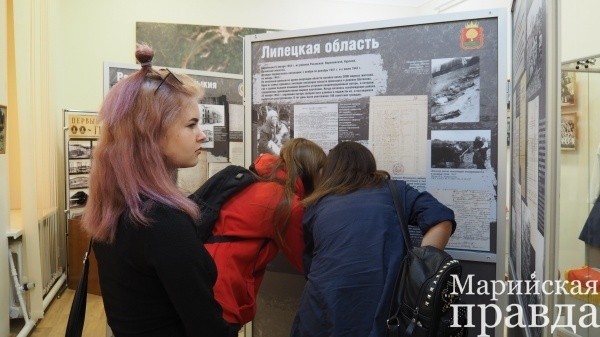 Выставочные стенды размещены в двух залах Волжского краеведческого музея. Экскурсию для молодых волжан провел заместитель руководителя поискового отряда «Воскресения», сотрудник музея истории Йошкар-Олы Юрий Иванов.