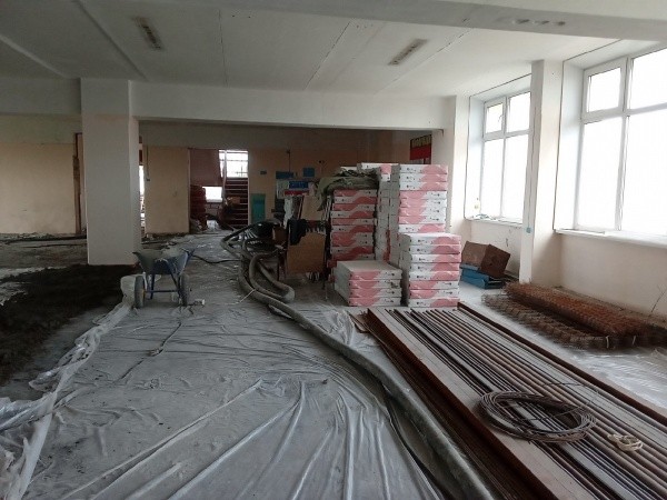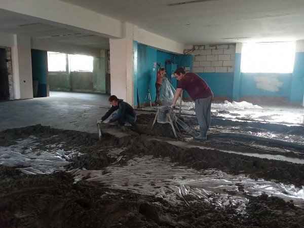 Директор Волжского городского спорткомплекса Евгений Серяков поделился в социальной сети фотографиями проводимого ремонта. Он заверил, что работы проходят в соответствии с графиком. На данный момент рабочие заняты стяжкой пола и штукатурными работами. Запланирован ремонт входной группы на сам стадион.