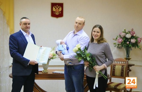 Исполняющий обязанности мэра Волжска Алексей Веселов лично вручил Ольге и Николаю Медведевым свидетельство о рождении малыша. Вручение прошло в отделе ЗАГС Волжска.