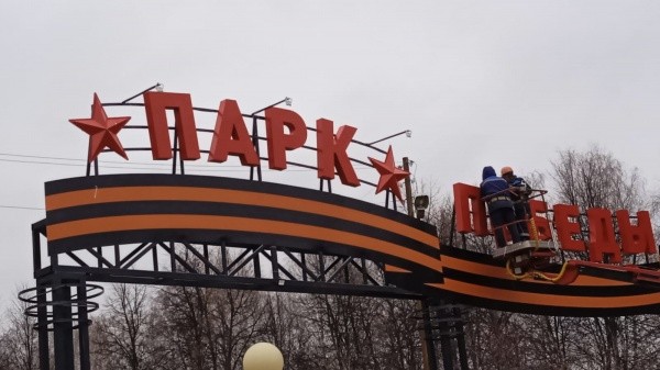 Накануне у надписи «Парк Победы» перед входом на территорию главного волжского мемориала появилась подсветка.