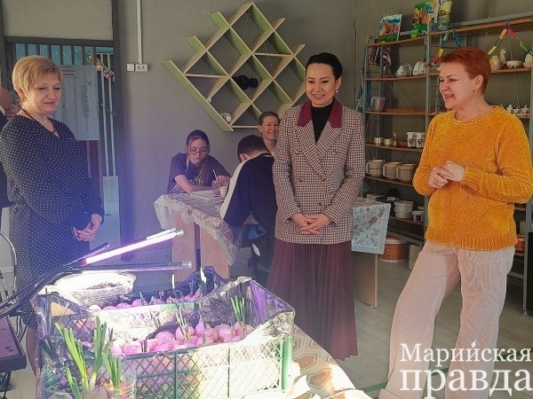 Ольга Бадма-Халгаева посетила центр полезной занятости «Делу – время».Центр полезной занятости создан в Волжске в рамках социального проекта общественной организации «Ребенок с будущим», который стал победителем в конкурсе Фонда президентских грантов в 2022 году.– До этого я побывала в школе №4, где развивается опыт взаимодействия нормотипичных детей с детьми с особенностями в развитии. Он меня поразил. В России таких практик очень мало, и что подобное развивается в нашей республике, это хорошо. Поэтому захотела увидеть и то, чем ребята с инвалидностью, став взрослее, занимаются дальше.
