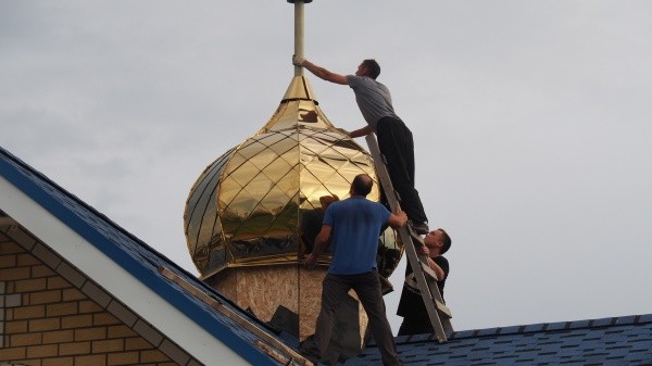 В микрорайоне «Горгаз» в Волжске завершается строительство здания воскресной школы, внутри которой расположится и придомовой храм. Накануне, 12 июля, состоялось освящение купола и креста, а затем их воздвижение на построенное здание.