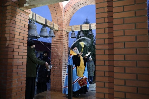 Во вторник, 19 ноября, митрополит Йошкар-Олинский и Марийский Иоанн совершил чин освящения новых колоколов для часовни, расположенной на территории Управления механизации строительства в Йошкар-Оле.