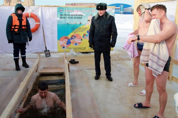 Как рассказали в пресс-службе УФСИН по республике, после бодрящего купания грелись у печей и осужденные исправительного центра при медведевской колонии, которые, с разрешения администрации учреждения, тоже последовали православной традиции. Руководство разрешило им краткосрочный выезд для крещенского омовения, тем более что этот день был у них выходным. Впрочем, Н+несколько осужденных, занятых на производстве, тоже в назначенный час подъехали к ледяной иордани, причем вместе со своим работодателем.