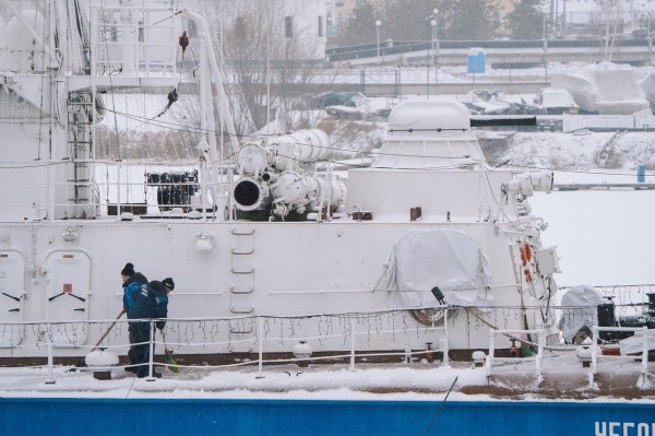 Этой зимой в Звенигове на заводе "Базис-групп" готовят к предстоящей навигации толкач-буксир "Волгарь" Чебоксарского речного порта.