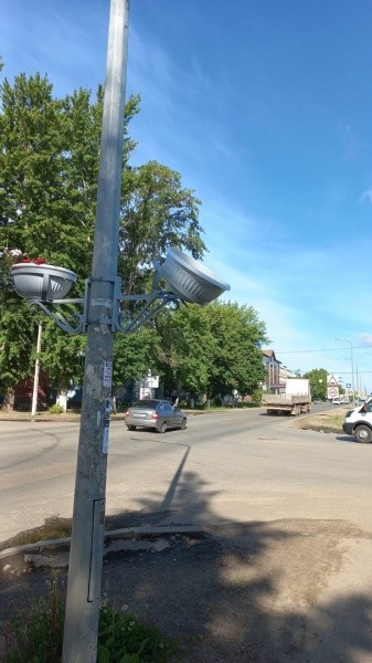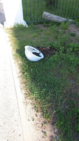 Однако кому-то цветы чем-то помешали. Вазоны размещены на уровне значительно выше среднего роста человека. Но вандалов это не остановило: усилия были приложены, чтобы вытащить горшки из креплений и опрокинуть их на тротуар. Остается только думать, кому и для чего это было нужно?