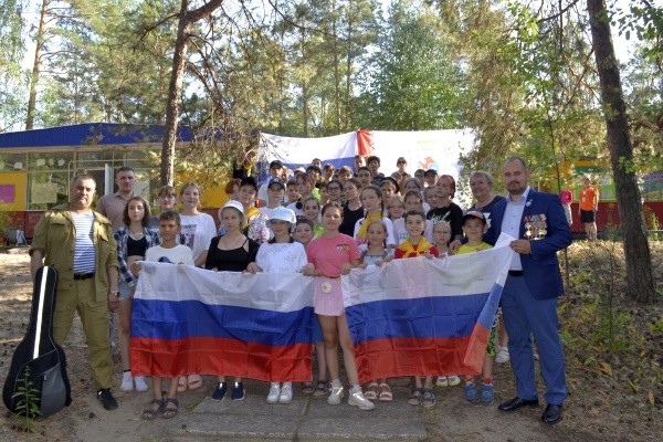 В преддверии Дня Государственного флага Российской Федерации в детском оздоровительном лагере «Кооператор» руководитель филиала Государственного фонда «Защитники Отечества» по Республике Марий Эл, кавалер ордена Мужества Ренат Магсумов и ветеран специальной военной операции Григорий Кузнецов провели для ребят урок мужества.