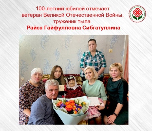 Сегодня свой 100-летний юбилей отмечает ветеран Великой Отечественной Войны, труженик тыла Райса Сибгатуллина.