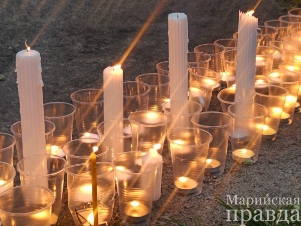 В завершение состоялась акция «Свеча памяти». Ее подготовили волонтеры Победы. Они составили из 1500 свечей композицию в виде силуэта и журавля и надписи «Волжск помнит». Многие волжане пришли на мероприятие со своими свечами и дополнили ими общую картину. Также огни зажглись и возле всех монументов в парке Победы. Волжск помнит.
